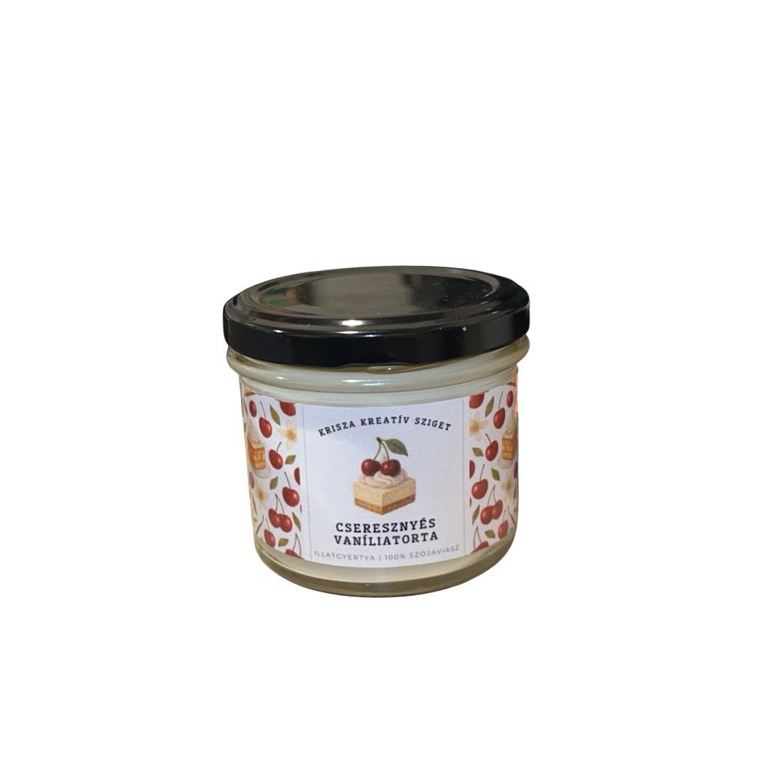 Kézzel öntött, természetes szójaviaszból készült illatgyertya, amely a frissen sült vaníliás torta és a lédús cseresznye édes, desszertszerű illatával tölti meg a szobát. A krémes vanília és a gyümölcsös cseresznye harmóniája igazán meleg, otthonos hangulatot teremt.