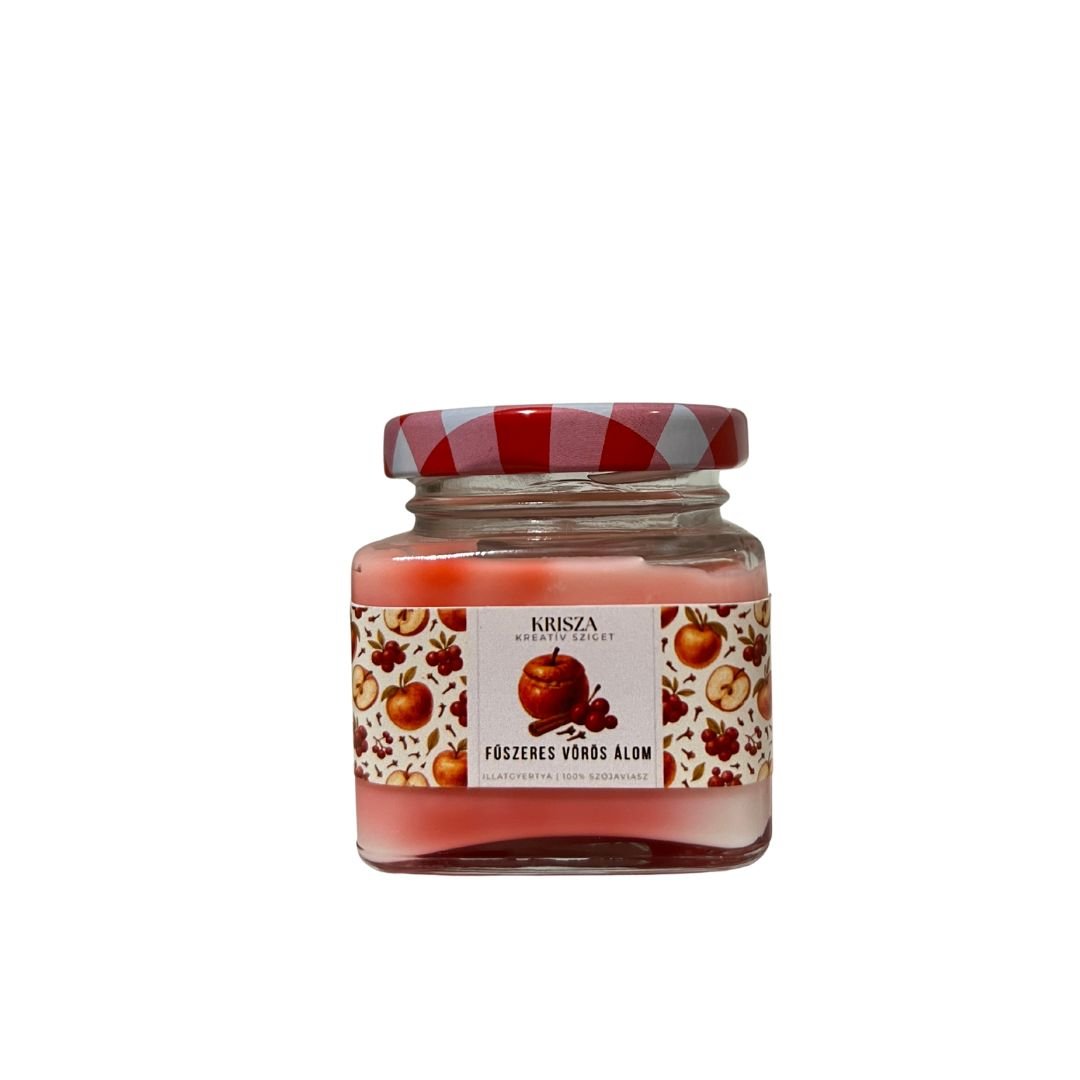 A Fűszeres Vörös Álom illatgyertya nem más mint: sült alma, vörös áfonya tökéletes összhangja. Kézzel öntött, természetes szójaviaszból készült gyertya, meleg piros színben, kockás tetővel igazi téli kedvenc. Meghitt, otthonos illatával minden láng egy darabka karácsonyi varázs.